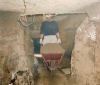 この坑道が杭工事を行う為の作業スペースです。穴の深さは人が通れるぐらいの深さです。巾は1メートル程度の巾で基礎の廻りに坑道を作っていきます。